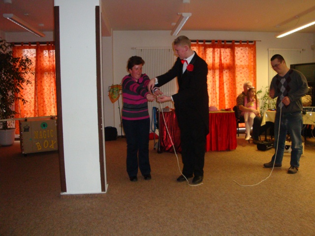 Zuerst ließen wir uns zu Kaffee und Leckereien "vezaubern". Die Show war sehr unterhaltsam und wir staunten, was der Zauberer Holly so alles drauf hatte. Sogar Osterhasen wurden herbeigezaubert. Einige von uns wurden durch den Zauberer geschickt und charmant mit einbezogen und stellten sich den ungeahnten Herausforderungen mit Bravour. Damit wurde der Auftritt vor allem für die aktiv Beteiligten zu einem sehr schönen und unvergesslichen Erlebnis. Mit einer Disco und und einem kleinen Imbiss am Abend ließen wir unser Fest gemütlich ausklingen.